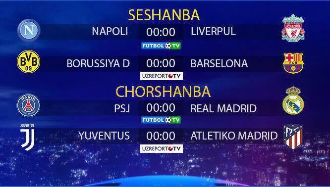 Chorshanba kuni LaLiga chempioni «Barselona» va Chempionlar Ligasi gÊ»olibi PSJ oÊ»rtasida kutilayotgan Chempionlar Ligasi oÊ»yini boÊ»lib oÊ»tadi. Yevropaning ikki daʼvogari oÊ»rtasidagi bu erta sinov har ikki jamoaning asosiy oÊ»yinchilari yoÊ»qligiga qaramay, qizgÊ»in kechishi kutilmoqda.