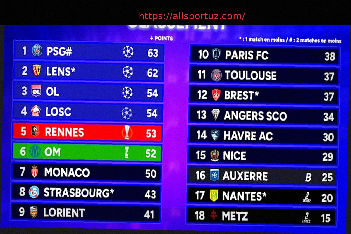 Ligue 1: PSJ – Nantes o’yiniga qadar bo’lgan turnir jadvali
